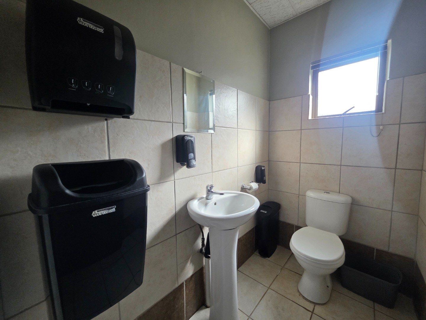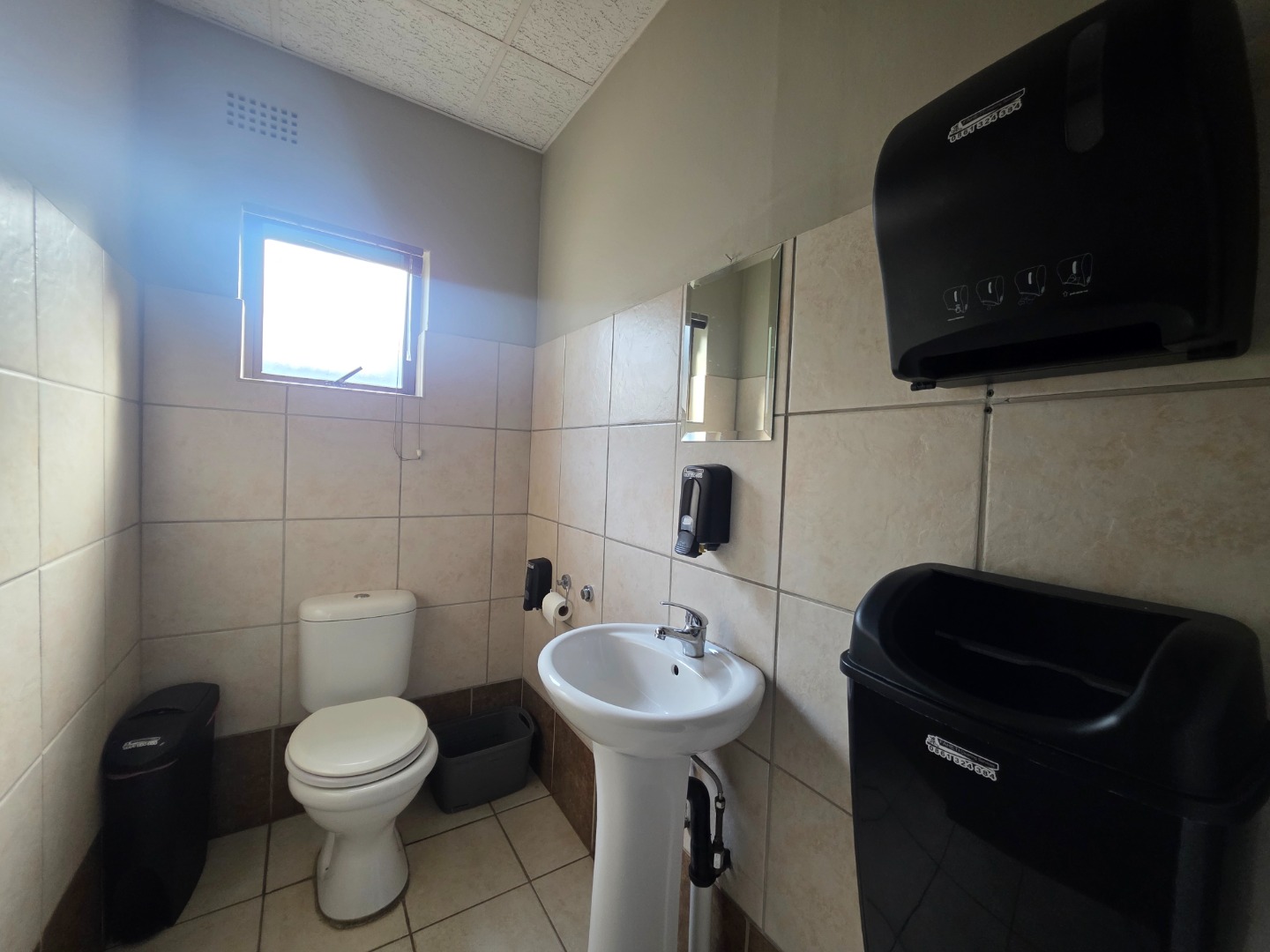 This exceptional commercial rental opportunity is ideally situated in the bustling Rustenburg Central, offering a versatile and functional environment. The property features a well-designed layout that includes multiple private office spaces, adaptable open-plan work areas, and dedicated meeting rooms. These spaces are complemented by a modern kitchenette, equipped with wood-grain cabinetry, granite-look countertops, and a double stainless steel sink, providing essential facilities for staff. Two well-maintained bathrooms further enhance the convenience of this commercial offering.