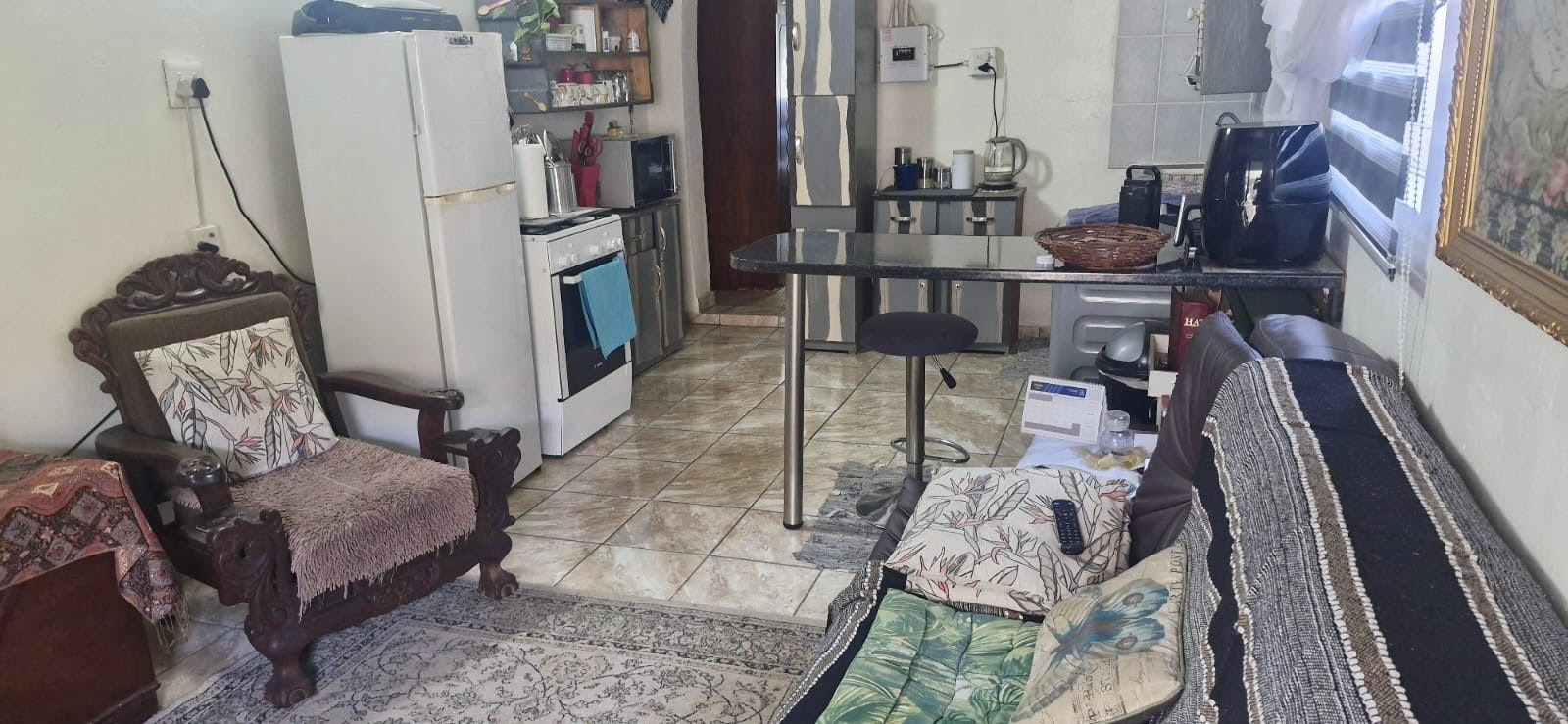 Kitchen with living area.